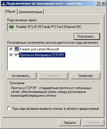 2. Выберите из списка пункт «Протокол Интернета (TCP/IP)» и нажмите кнопку «Свойства». Другие протоколы необходимо удалить для безопасности. |