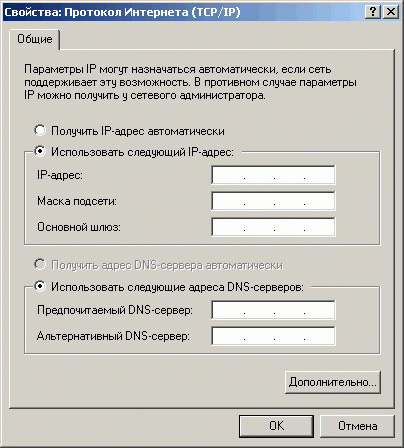 3. Заполните поля «IP-адрес», «Маска подсети», «Основной шлюз» и нажмите кнопку «OK».