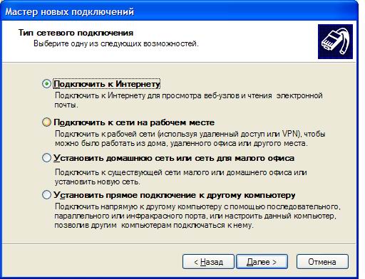3. Выберите вариант Подключить к Интернету и нажмите кнопку Далее. |