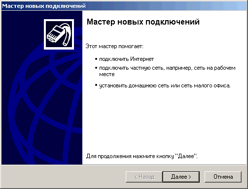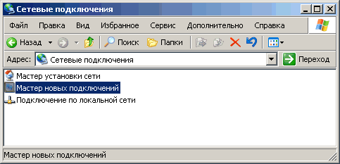 5. Для создания подключения к интернету из папки «Сетевые подключения» запустите программу «Мастер новых подключений».