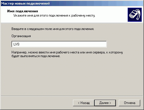 8. Укажите название для нового подключения. Нажмите кнопку «Далее».